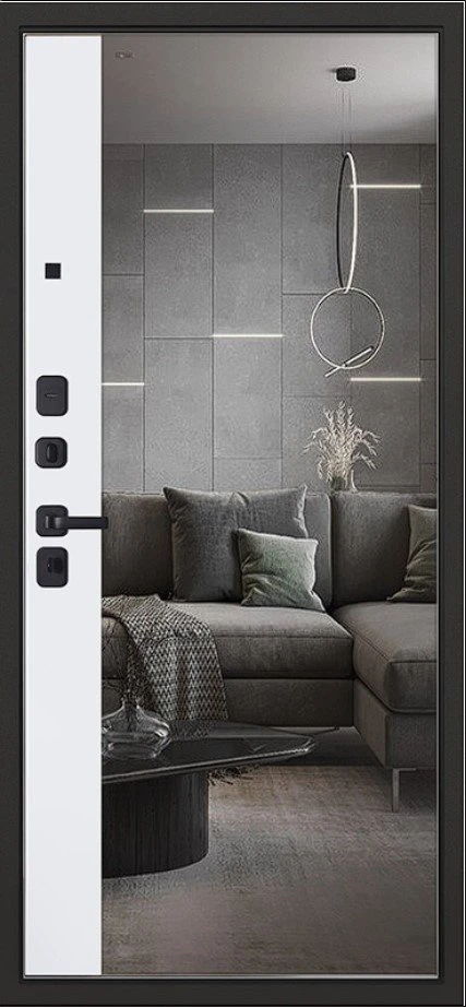 Надежная входная Дверь Scandi с зеркалом премиум класса по цене 45 227 руб. Большая толщина стали защитит от проникновения в ваш дом, квартиру или коттедж. Используется очень качественная фурнитура: замки, цилиндры, ручки, защелки. Покрытие и отделка двери изготовлено под внимательным контролем производителя. Дверь имеет долгий срок службы и гарантию.